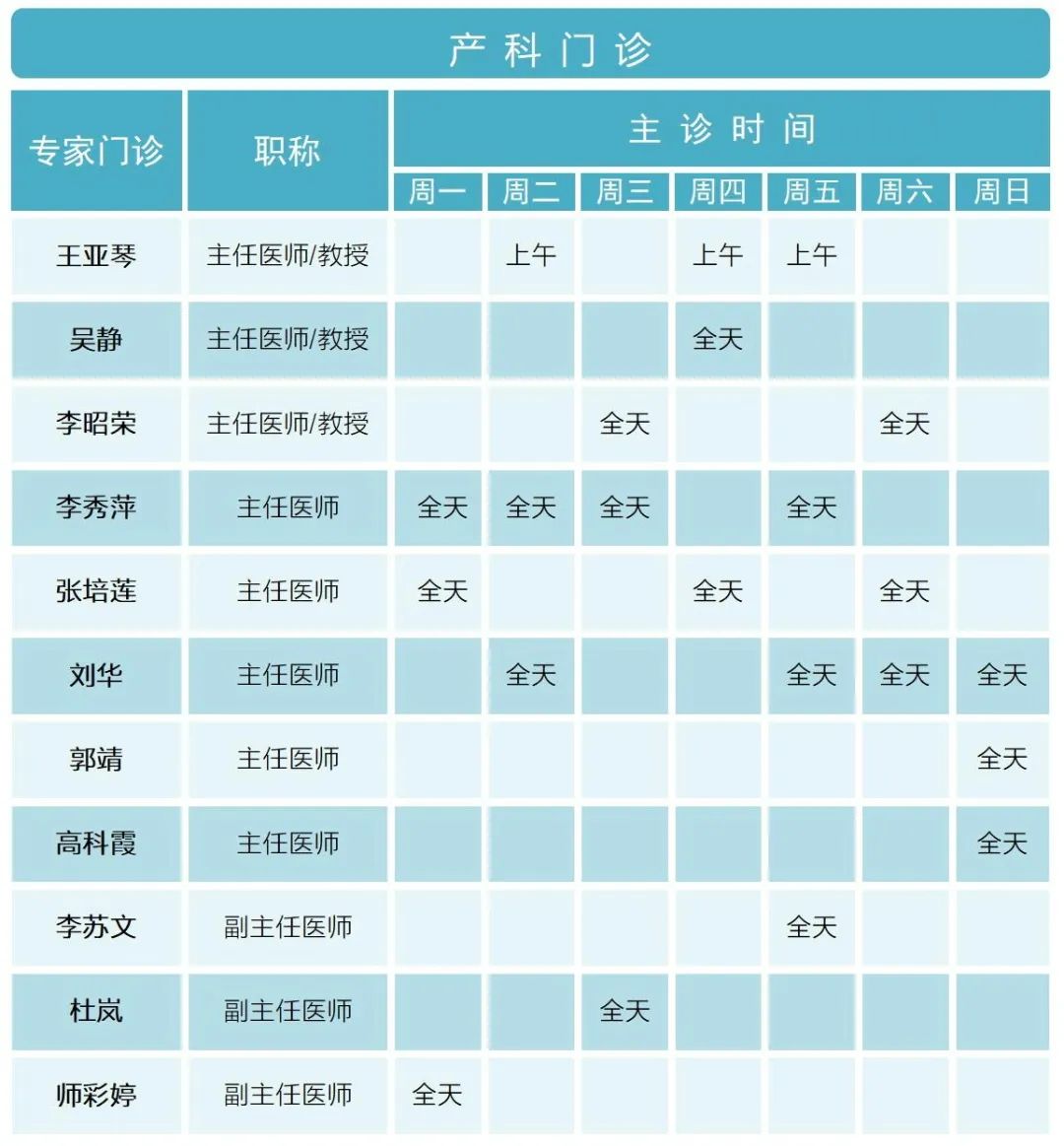 门诊排班 |(9月18日-9月24日)门诊专家坐诊时间表