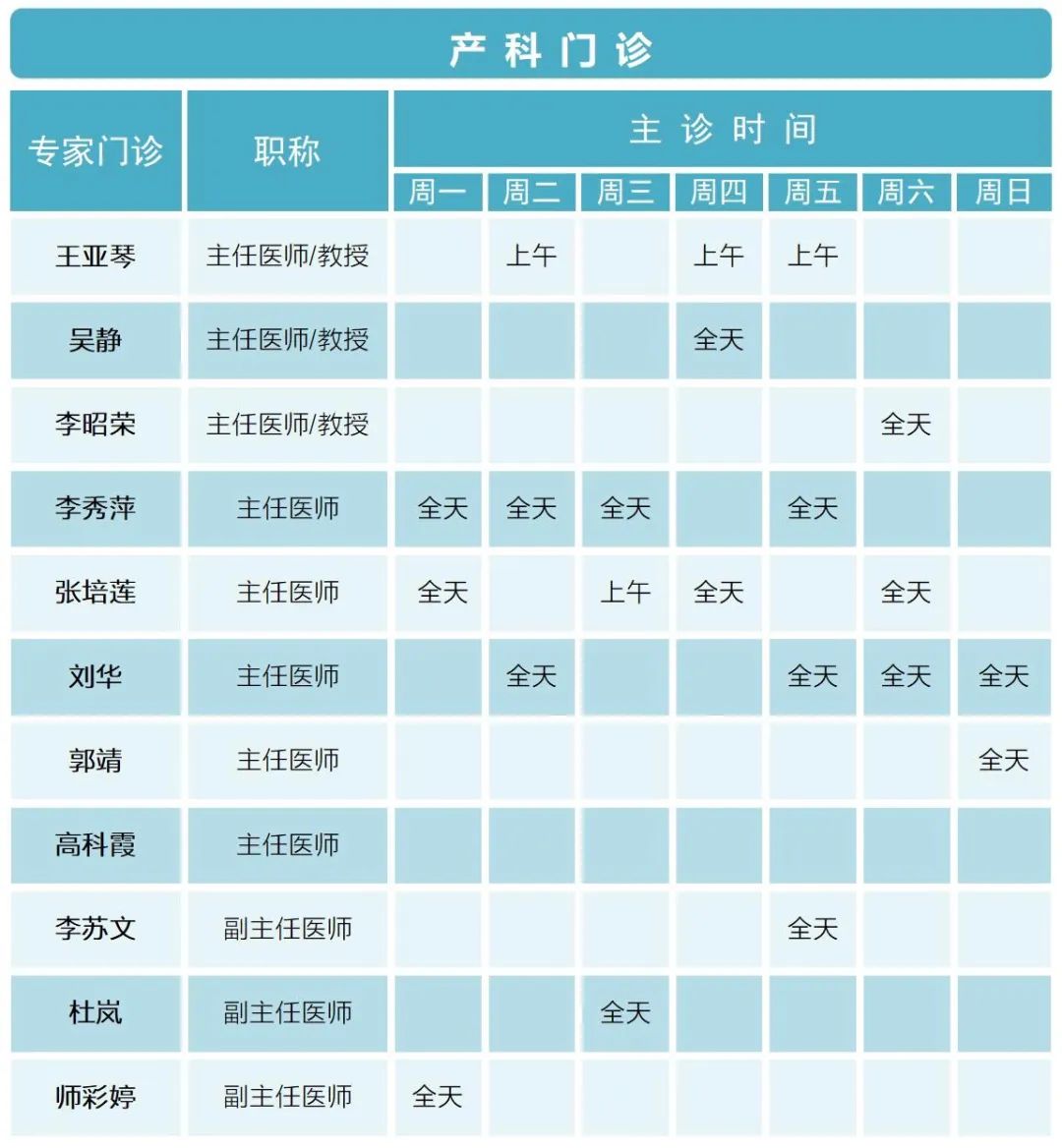 门诊排班 |(10月16日-10月22日)门诊专家坐诊时间表