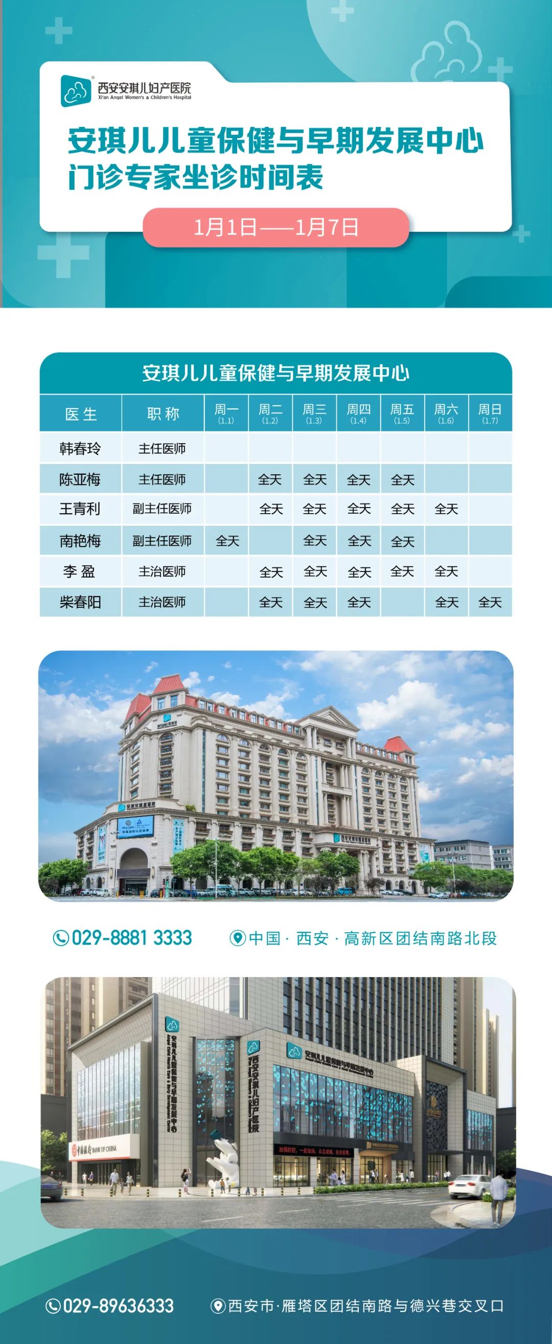 请收好!门诊专家(1月1日-1月7日)排班表