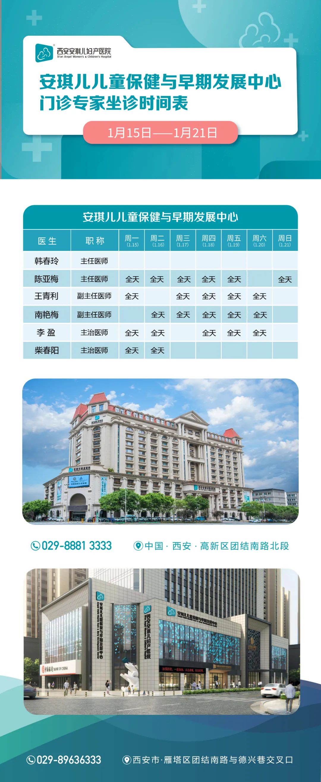 请收好!门诊专家(1月15日-1月21日)排班表