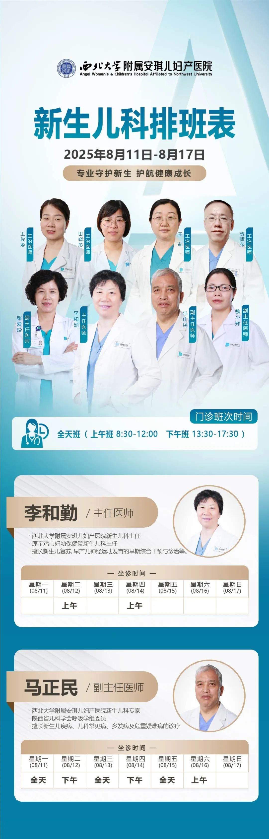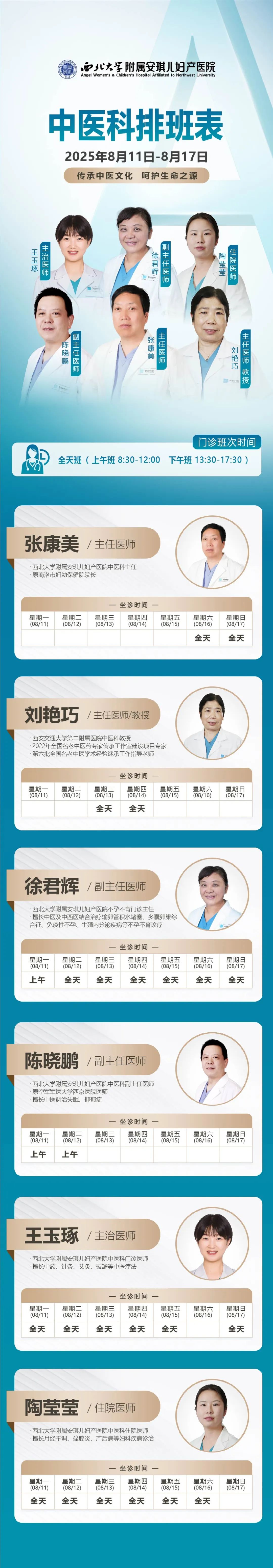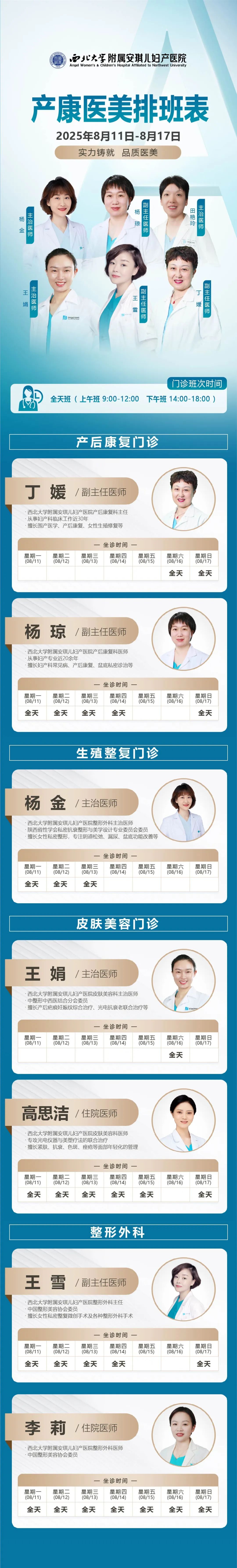 西安安琪儿妇产医院(8月11日至8月17日)专家坐诊时间表