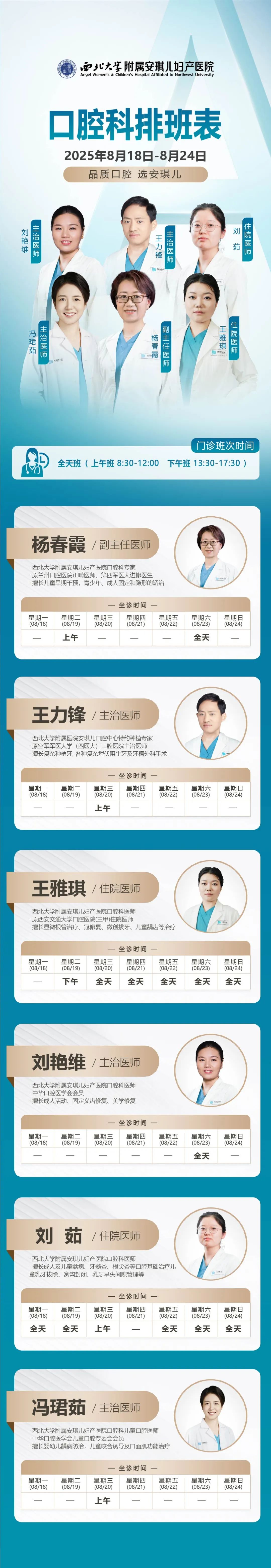 西安安琪儿妇产医院(8月18日至8月24日)专家坐诊时间表