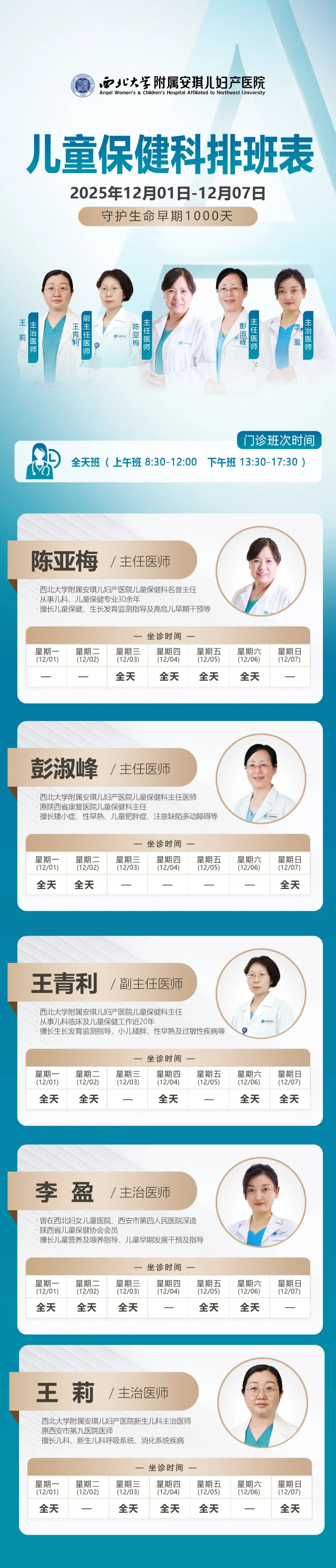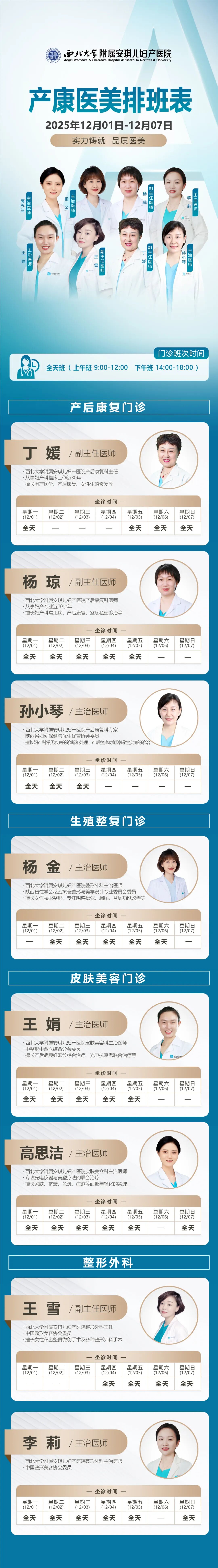 西安安琪儿妇产医院(12月1日至12月7日)专家坐诊时间表