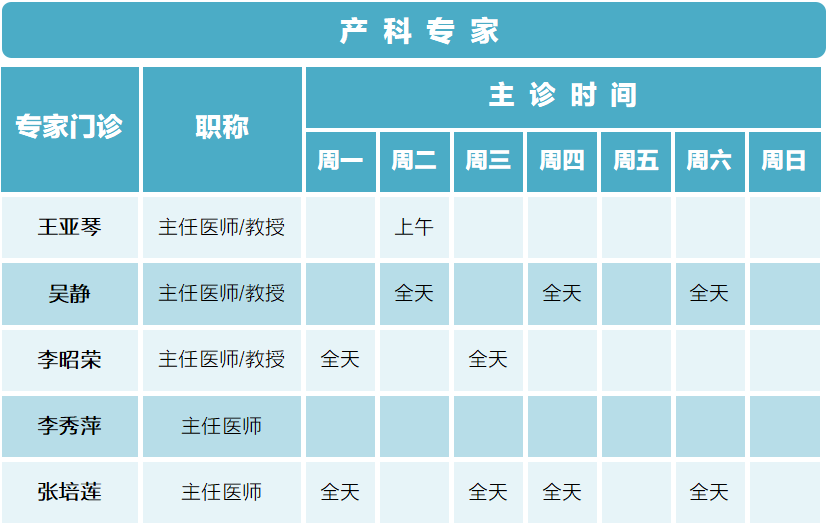 【门诊排班】5月8日—5月14日妇产、生殖、儿保门诊专家坐诊排班表