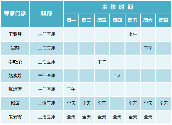 请收好!门诊专家(8月5日-8月11日)排班表,家门口就能看名医