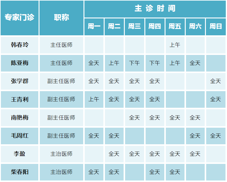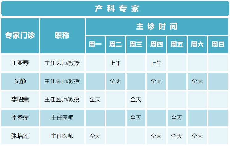 【门诊排班】5月22日—5月28日妇产、生殖、儿保门诊专家坐诊排班表