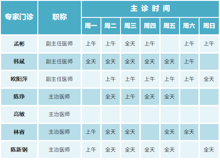 请收好!门诊专家(8月5日-8月11日)排班表,家门口就能看名医