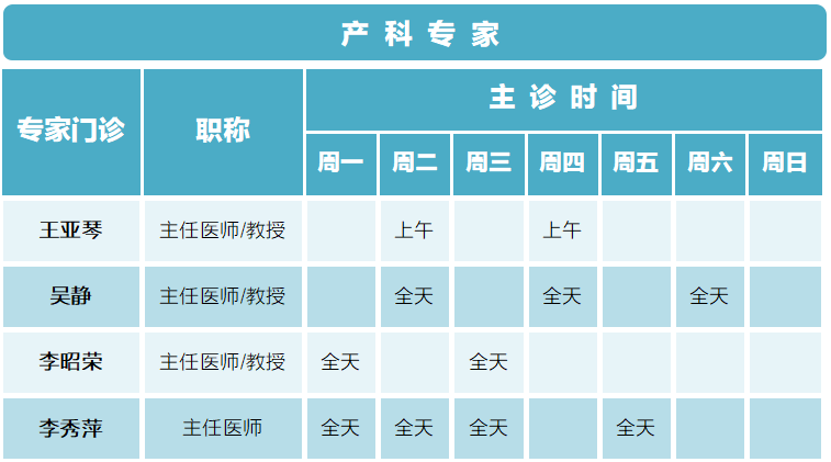 【门诊排班】5月29日—6月4日妇产、生殖、儿保门诊专家坐诊排班表