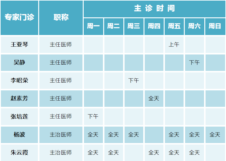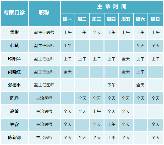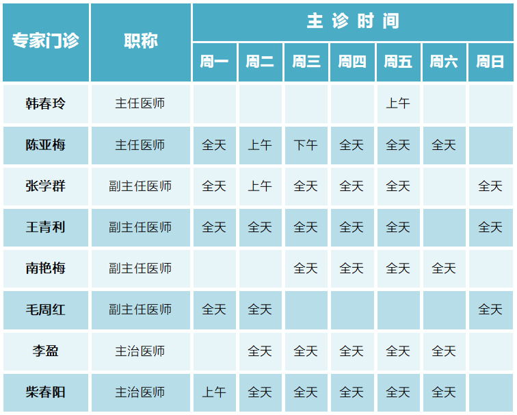 请收好!门诊专家(4月22日-4月28日)排班表