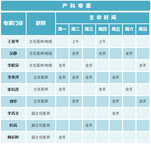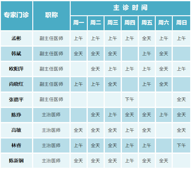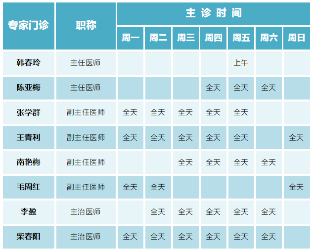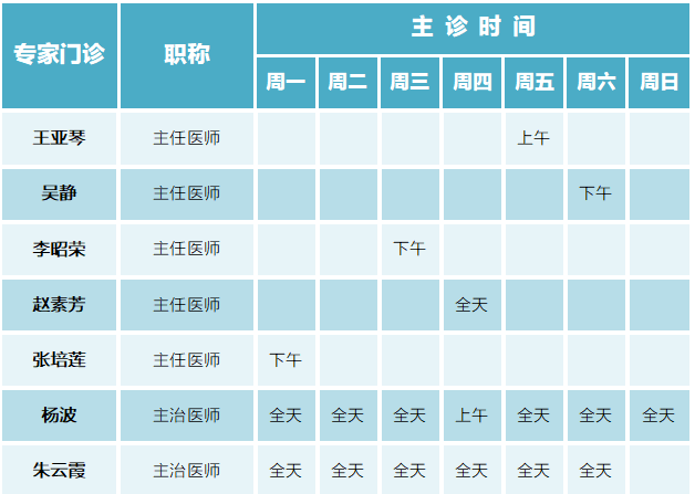 门诊排班|(6月5日-6月11日)门诊专家坐诊时间表