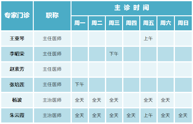 门诊排班|(6月26日-7月2日)门诊专家坐诊时间表