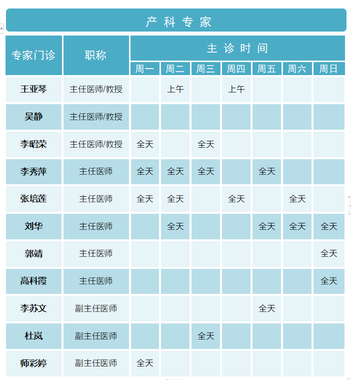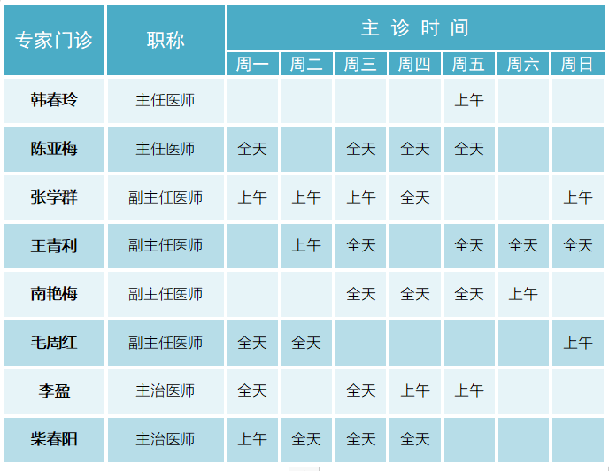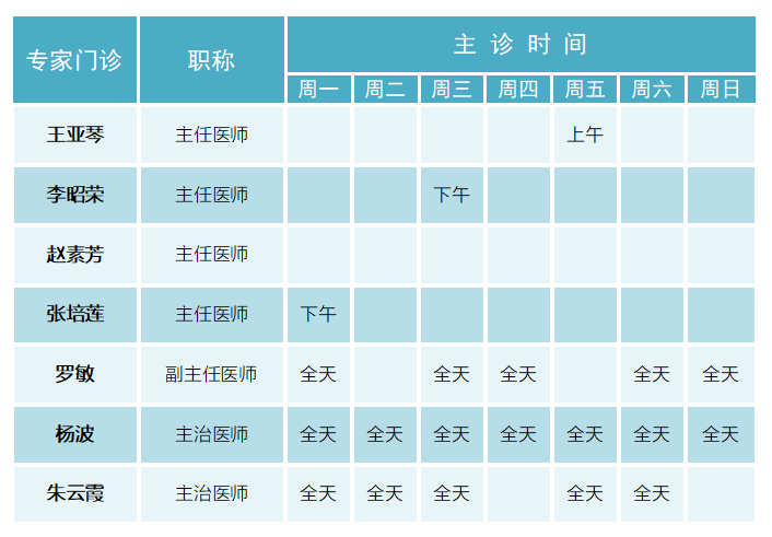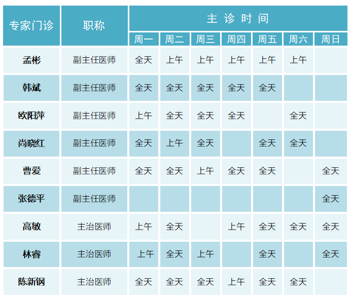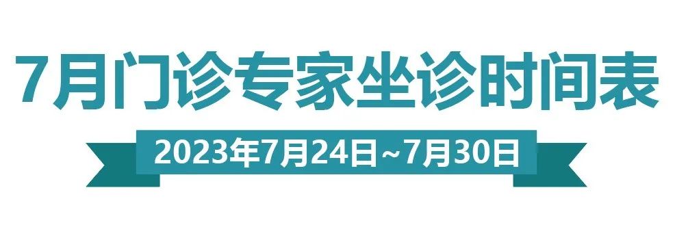 门诊排班|(7月24日-7月30日)门诊专家坐诊时间表