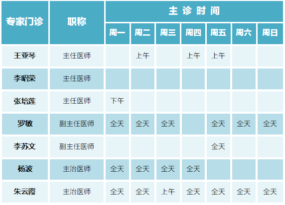 门诊排班|(8月7日-8月13日)门诊专家坐诊时间表