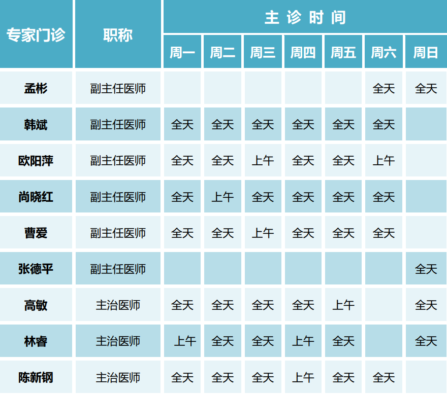 专家坐诊表