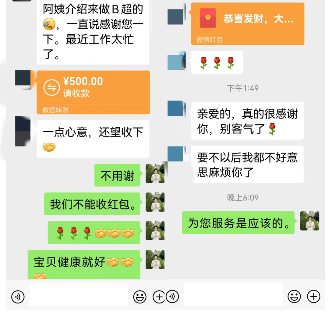 正如雷锋日记中说“对待同志要像春天般的温暖,对待工作要像夏天一样火热”,B超贺山鹰医生说:“对待孕妈妈,既要像春天,又要像夏天,一定要细心耐心有责任心。”B超医生在做检查的时候,总会遇到一些特殊情况,有的时候是胎宝不配合,一个四维做好几次,有的时候遇到一些体重较大的孕妈妈,腹部脂肪层厚,需要多番检查,还有些胎宝有畸形的情况,需要反复确认,无论哪种情况,我们的医生总是耐心细致对待,不仅是她,B超科医生都一样,因而孕妈总发红包表示感谢,秉承着服务患者,无私奉献的精神,我们的医生都拒绝了。