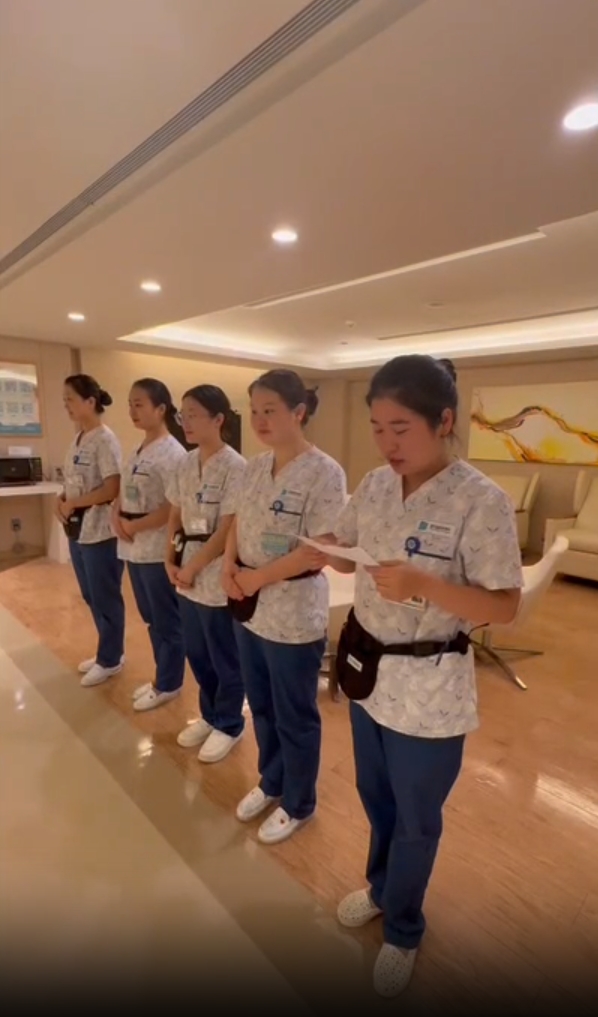 然而,在跨国医疗服务中,语言成了护理人员和外籍患者之间沟通的最大挑战。面对这种情况,安琪儿妇产医院重视并鼓励医护人员学习国际前沿的医疗知识和技术,同时,重视英语文化建设。在院领导及护理部白主任的倡导及大力支持下,妇科住院部护理人员率先行动,将英语晨交班作为提升国际交流能力的突破口。通过选拔英语能力较强的护士担任领学,制定详细的交班模板,鼓励全员参与,每日一句,日积月累,逐步构建起流畅的英语沟通环境。