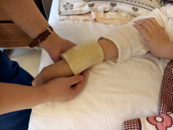 而对于吴女士一胎时遗留的腱鞘炎问题,护士们同样给予了细致的关怀与指导。向妈妈宣教:双手抱宝宝,能减少单手的压力,如果要单手抱,尽量使用上臂。在腱鞘炎复发时,及时提供了蜡疗服务,让这份老毛病得到了显著的缓解。这份细致入微的关怀,如同冬日里的暖阳,温暖而贴心。