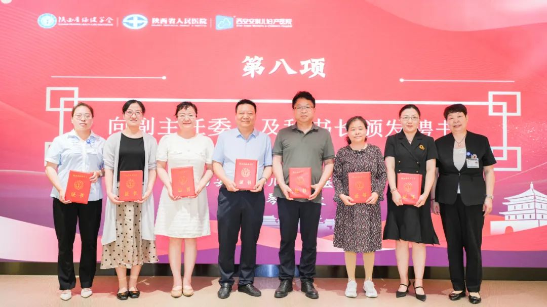 陕西省保健学会会长王岚教授宣读了陕西省保健协会《关于同意产后康复专业委员会举办换届大会的批复》文件,公布了第二届产后康复专业委员会名誉主任委员、主任委员、常务委员副主任委员、秘书长名单,并现场举行了聘任仪式。西安安琪儿妇产医院王亚琴教授当选为第二届产后康复专业委员会名誉主任委员,陕西省人民医院胡盈主任当选为第二届产后康复专业委员会主任委员,空军军医大学李怡博士等7人当选为副主任委员,西安安琪儿妇产医院产后康复科丁媛主任等22人当选为常务委员。