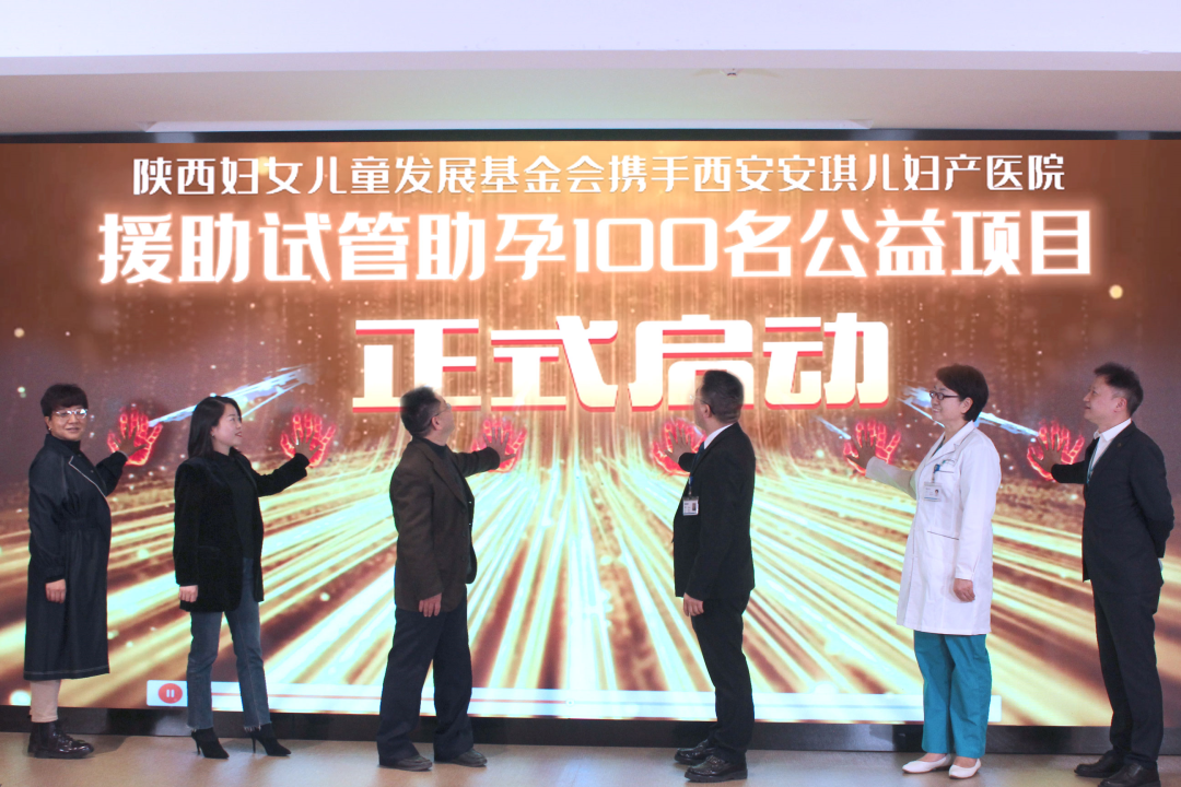 图示:陕西妇女儿童发展基金会与西安安琪儿妇产医院领导共同启动“援助试管助孕100个专项名额”公益项目