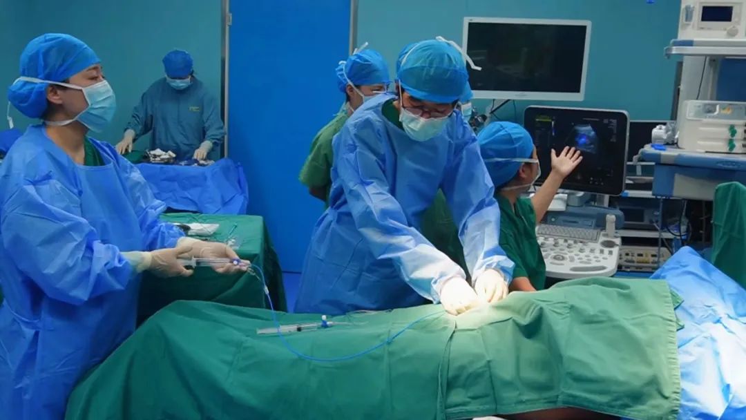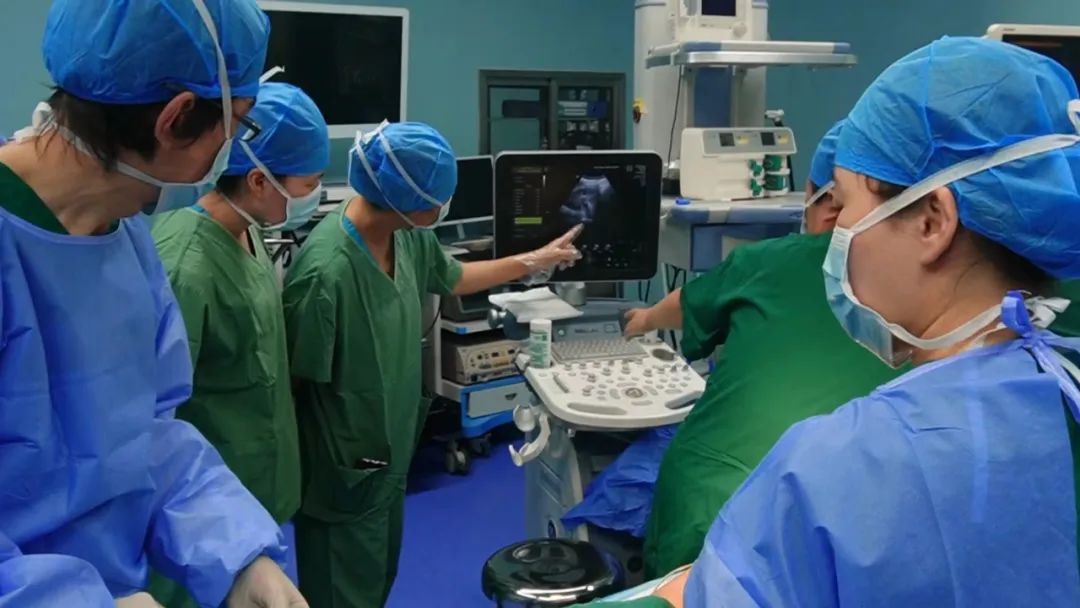 考虑到产妇妊娠情况,我院立即启动危重孕产妇救治流程,在医院急危重症小组及产科安全管理办公室的协作下,院长王亚琴带领组织介入科、产科、新生儿科、输血科、麻醉科、影像科、超声科、重症医学科等多学科专家,对产妇病情进行详细全面的讨论,制定严密的手术方案,并对术中可能发生的大出血、凝血功能障碍、失血性休克等情况制定了充分的应急预案。经过术前评估与讨论,决定为其行B超引导腹主动脉预置,术中进行腹主动脉阻断。