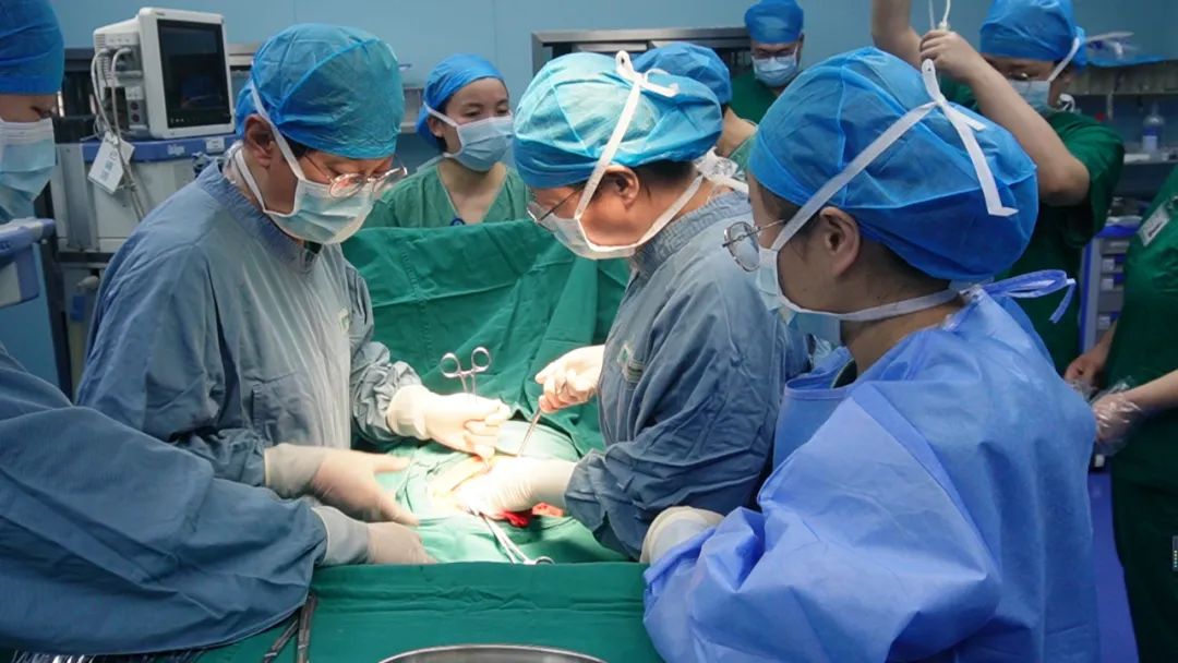 手术中,硬腰联合麻醉后,张培莲主任带领产科团队联合多学科专家,在省内著名专家董永安主任和刘莉主任的协作下,B超引导腹主动脉预置,术中进行腹主动脉阻断,在血流阻断保护下主刀张培莲主任可以游刃有余地进行剖宫产手术。术中,胎盘植入,胎盘穿过子宫肌层达子宫浆膜,娩出胎儿;胎儿及大部分胎盘娩出后,植入的胎盘缝合于子宫壁加子宫整形术,球囊打开后子宫出血比较少。手术过程顺利,既保留了子宫,出血又少,姚女士的出血总量仅约300ml。